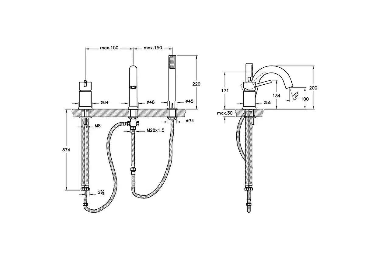 Vitra Istanbul Joystick Küvet Bataryası (El Duşlu)