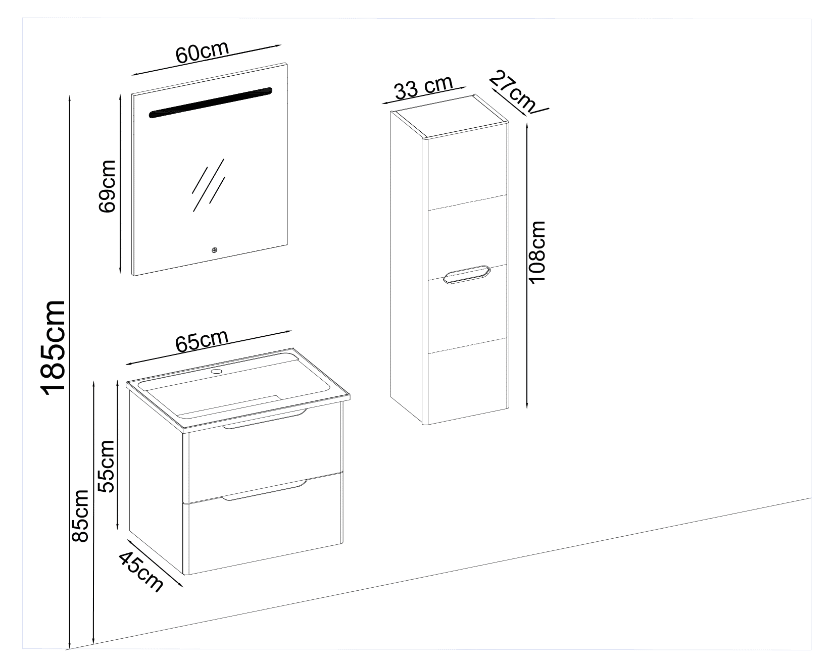 Bagnora MARE 65 cm Banyo Dolabı – Beyaz/Antrasit (Boy Dolaplı)