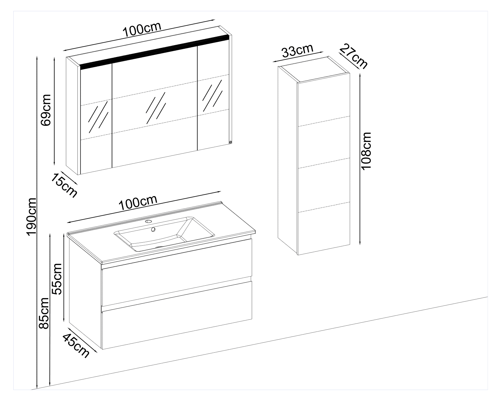 Bagnora Nemesis 100 cm Banyo Dolabı