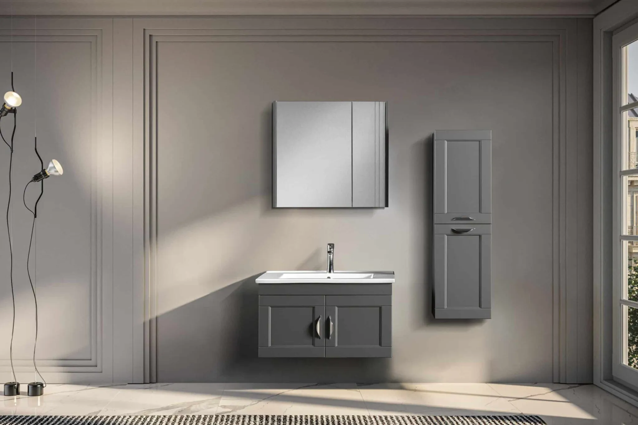 Bagnora Alaçatı 85 cm Antrasit Banyo Dolabı (Boy Dolapsız)