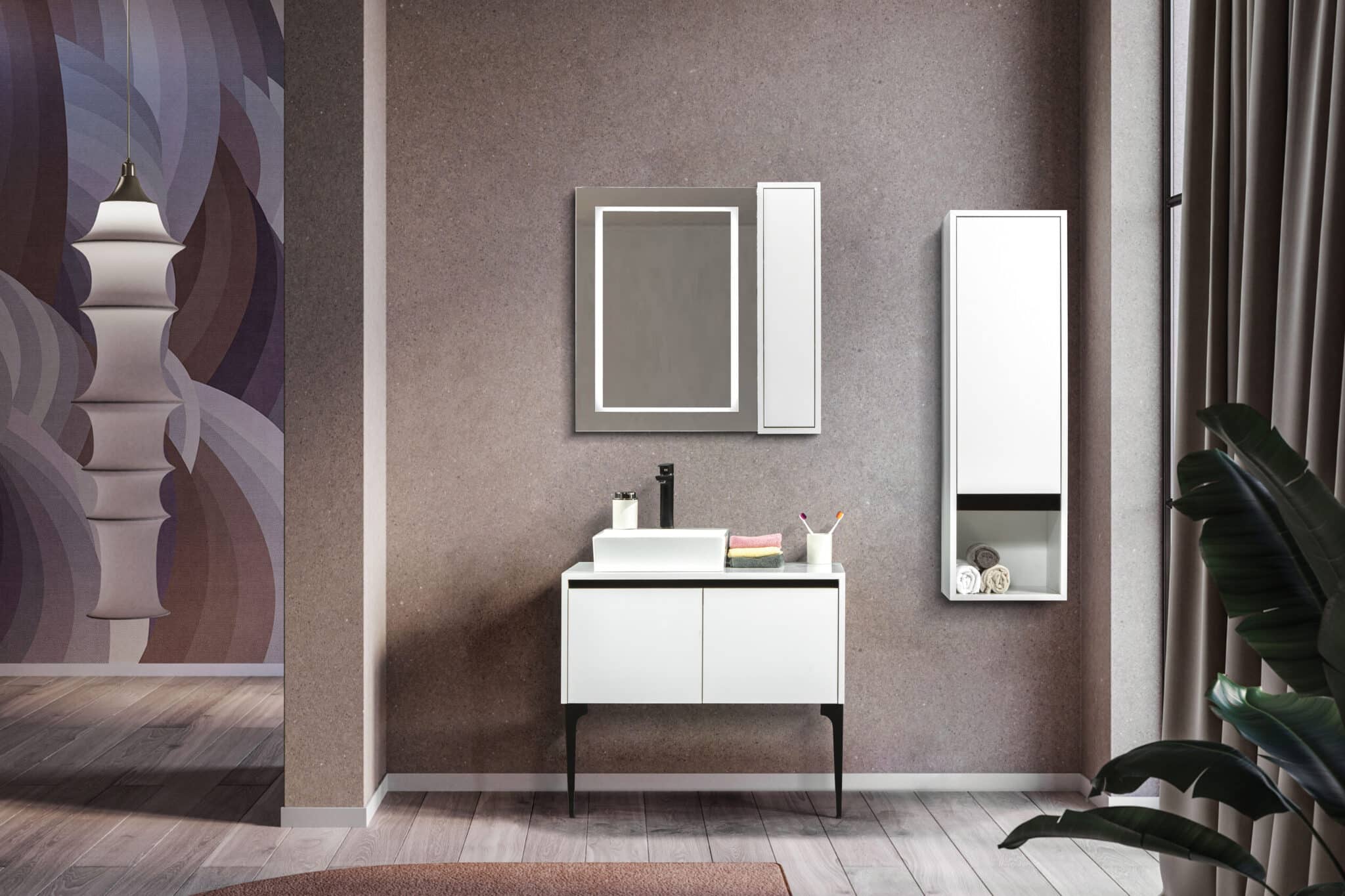 Bagnora MARE 65 cm Banyo Dolabı – Beyaz/Antrasit (Boy Dolaplı)