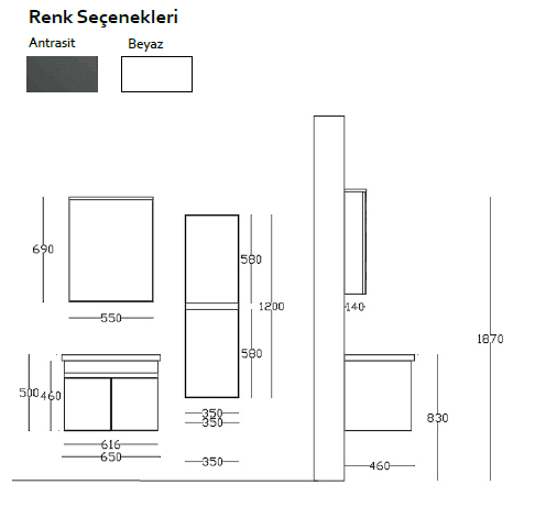 Bagnora PERGE 80 cm Banyo Dolabı - Beyaz/Antrasit (Boy Dolaplı)