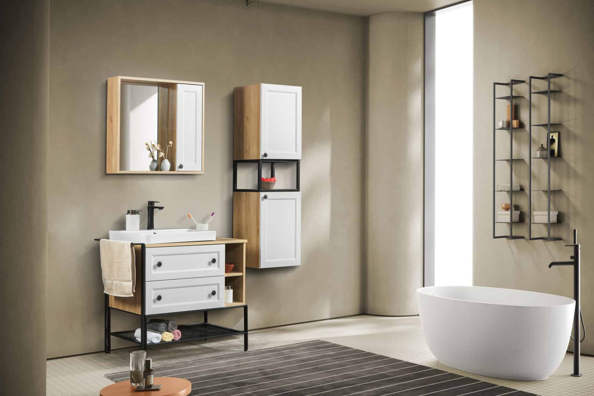 Bagnora SARDES 80 cm Banyo Dolabı – Beyaz/Antrasit (Boy Dolaplı)