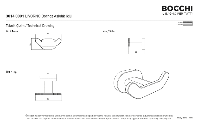 Bocchi Livorno Bornoz Askılığı – İkili Krom
