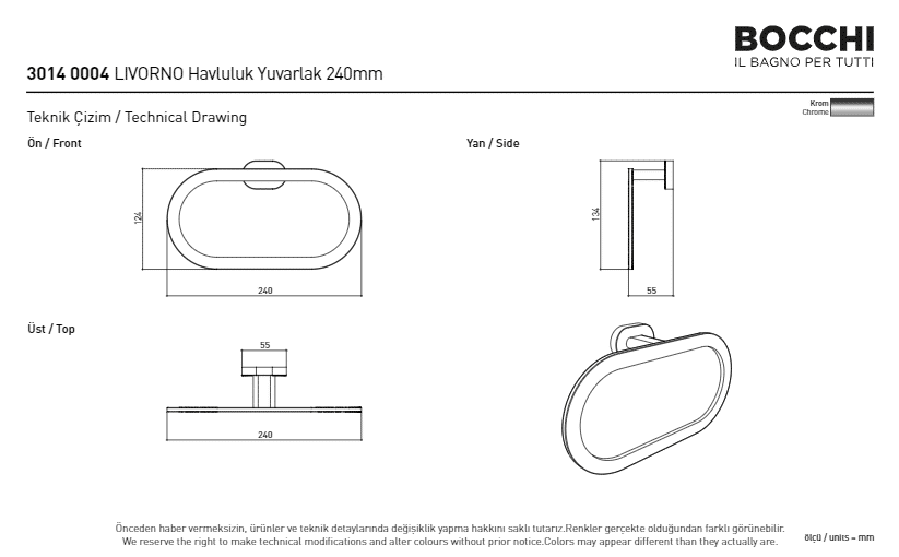 Bocchi Livorno Yuvarlak Havluluk 240 mm Krom