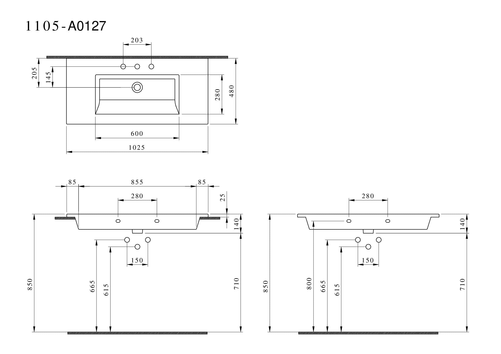 Bocchi Milano Etajerli Lavabo 100 cm Üç Delikli Mat Siyah