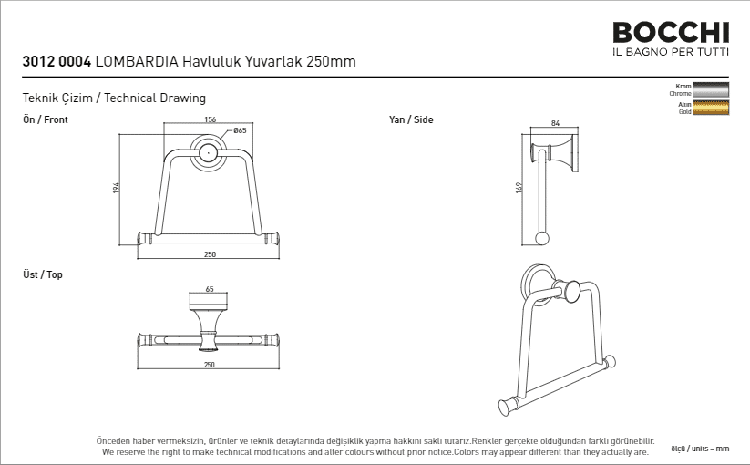 Bocchi Nuova Lombardia Yuvarlak Havluluk Krom