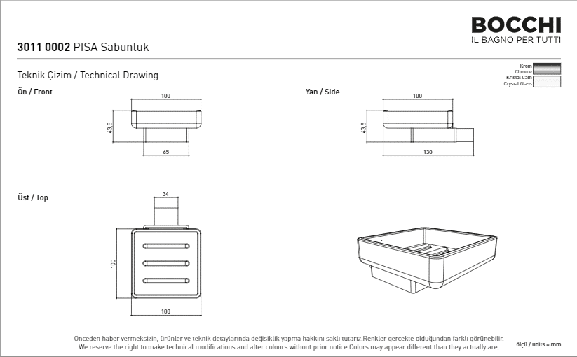 Bocchi Pisa Sabunluk Tezgah Üstü Krom
