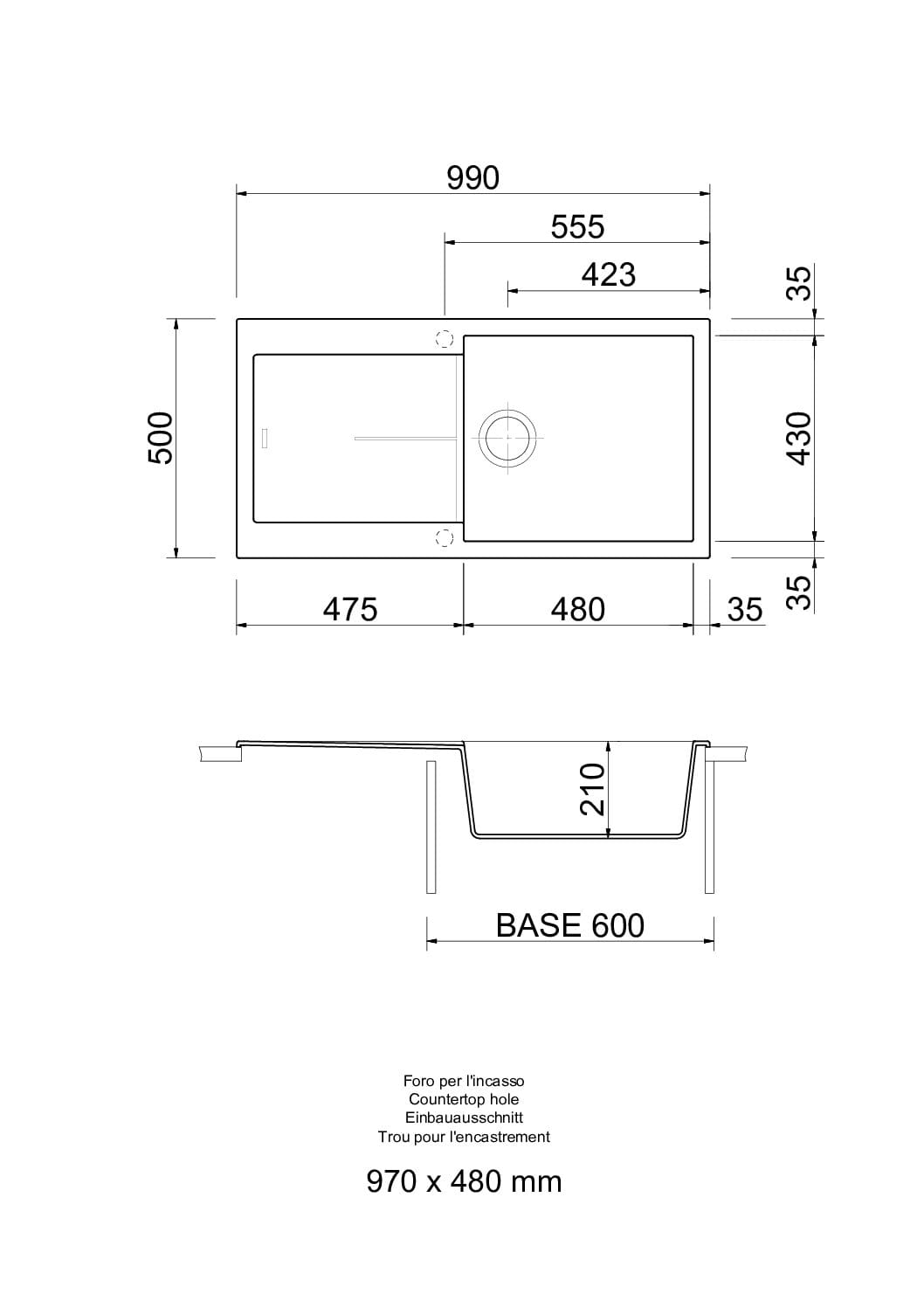 Bocchi Prato 990x500 Tek Gözlü Damlalıklı Deep Black