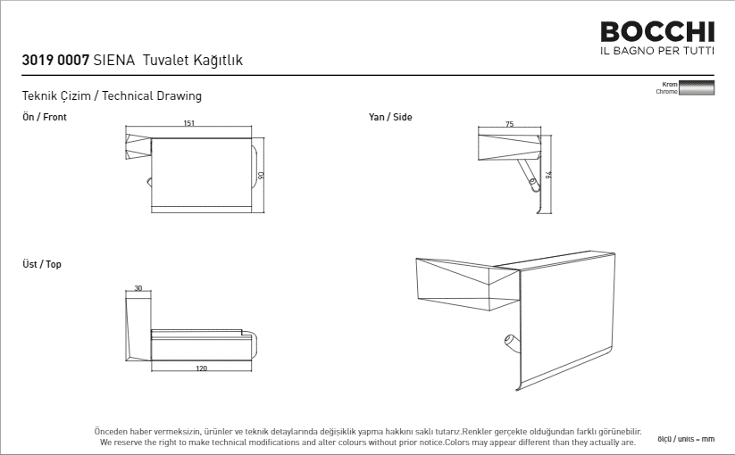Bocchi Siena Tuvalet Kağıtlığı – Kapaklı Krom