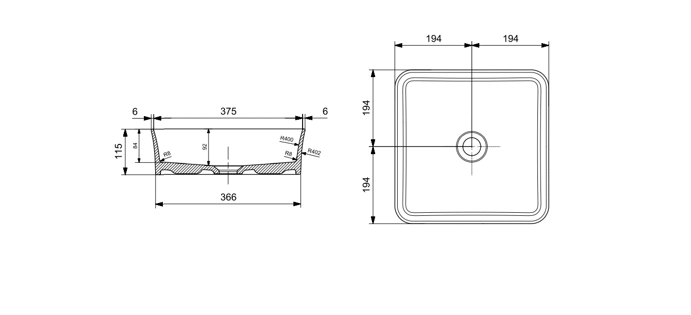 Bocchi Sottile Slim Line Tezgah Üstü Lavabo 38×38 cm Mat Gri