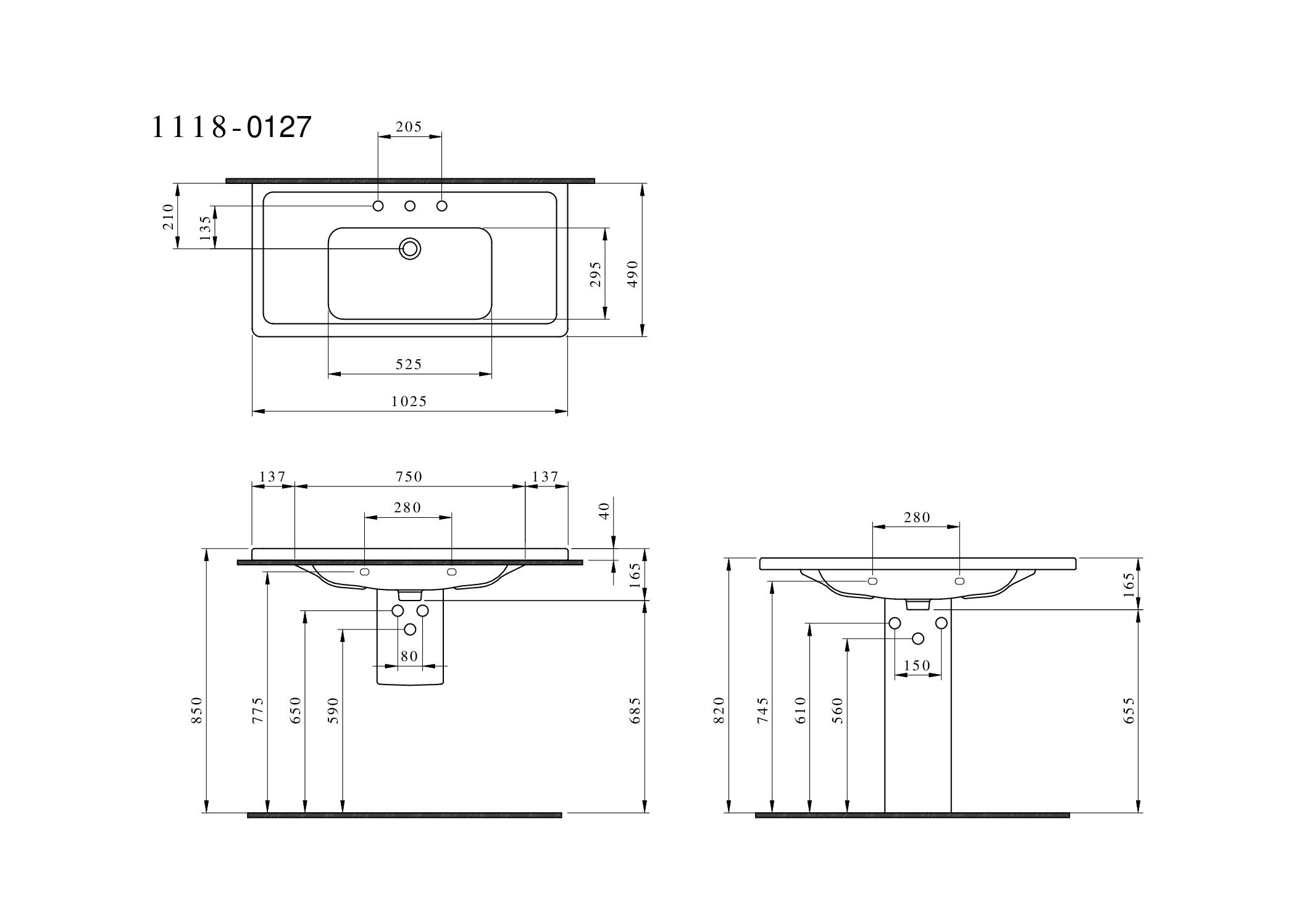 Bocchi Taormina Pro Etajerli Lavabo 105 cm Üç Delikli Parlak Beyaz