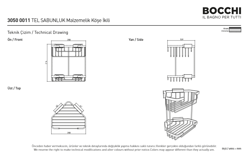 Bocchi Tel Sabunluk Köşe Malzemelik - İkili Tel Sabunluk Köşe Malzemelik - İkili Krom