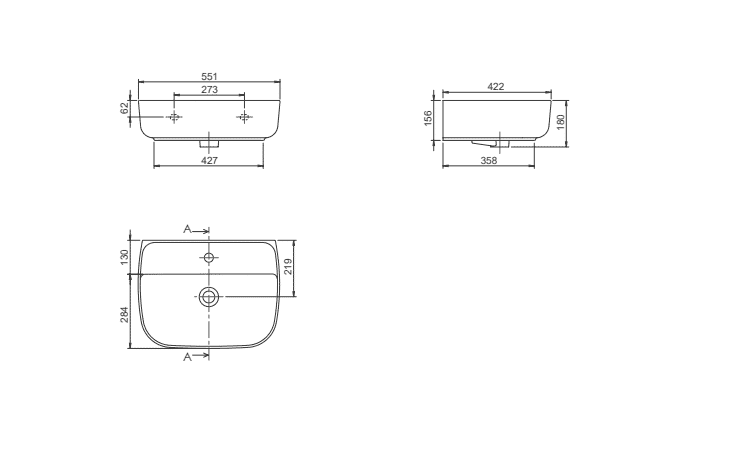 Lena E-4613 Beyaz Tezgah Üstü Lavabo