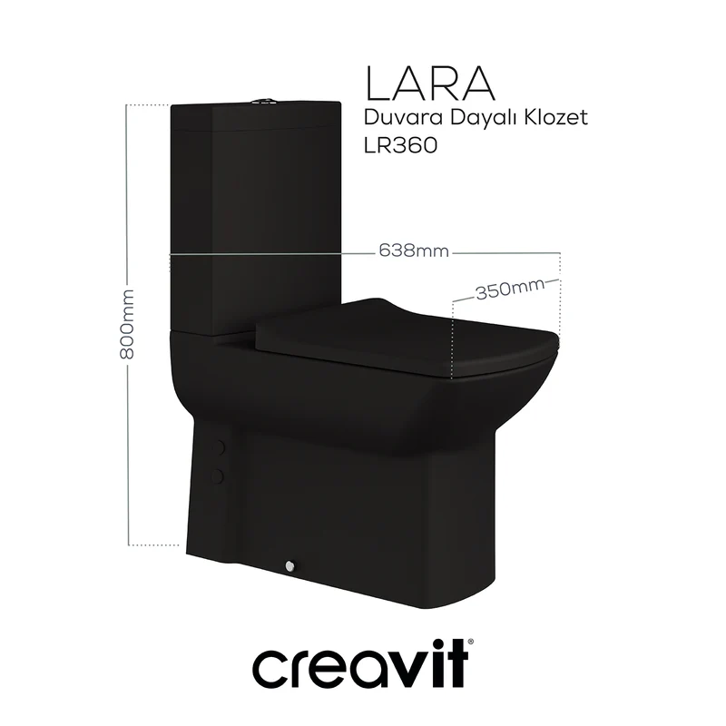 Creavit Lara Takım Klozet Mat Siyah+Duroplast Kapak+Lara Rezervuar+Çift Basmalı İç Takım Set