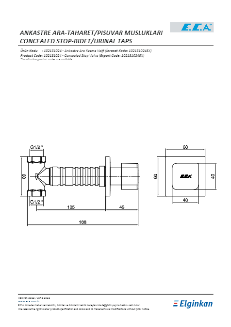 ECA Royal Ankastre Ara Kesme Valfi - 102151026 Orijinal fiyat: 2.984₺.Şu andaki fiyat: 1.689₺.