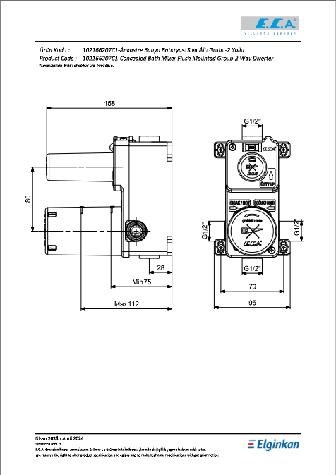 ECA Ankastre Banyo Bataryası Sıva Altı Grubu 2 Yollu Mat Beyaz - 102166207C4