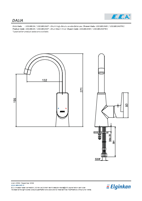 ECA Dalia Lavabo Bataryası Kuğu Borulu – 102188134