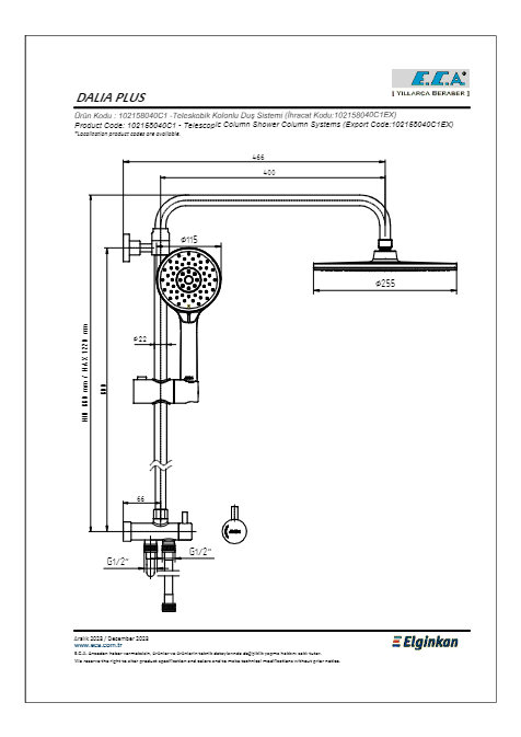 ECA Dalia Plus Teleskobik Kolonlu Duş Sistemi Ø255 - 102158040