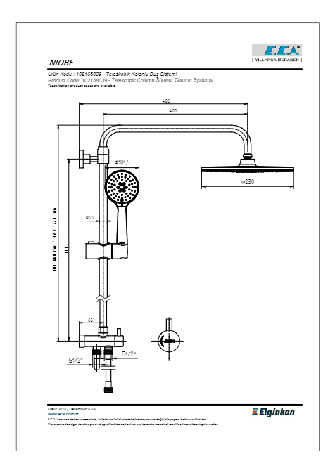 ECA Niobe Teleskobik Kolonlu Duş Sistemi Ø230 – 102158039