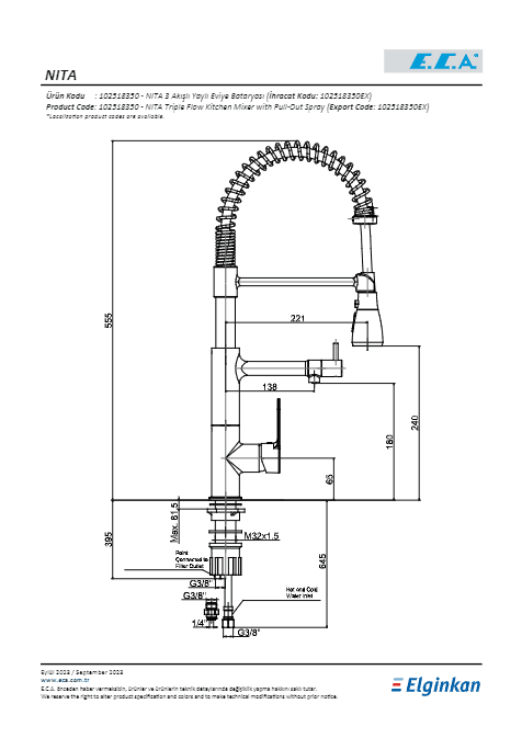ECA Nita 3 Akışlı Eviye Bataryası Paslanmaz Çelik – 102518350