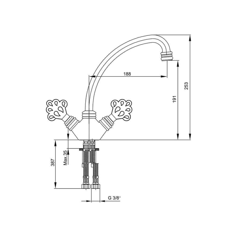 Bocchi Burlington Tek Kumandalı Eviye Bataryası Antik Siyah