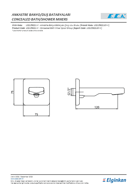 ECA Ankastre Banyo Bataryası Sıva Altı Grubu 2 Yollu - 102166207 Orijinal fiyat: 8.149₺.Şu andaki fiyat: 4.836₺.