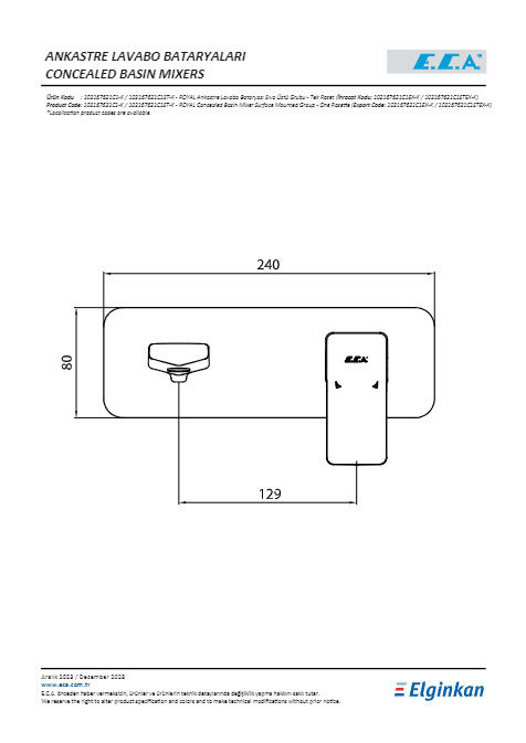 ECA Royal Ankastre Lavabo Bataryası Sıva Üstü Tek Rozet - 102167621-K