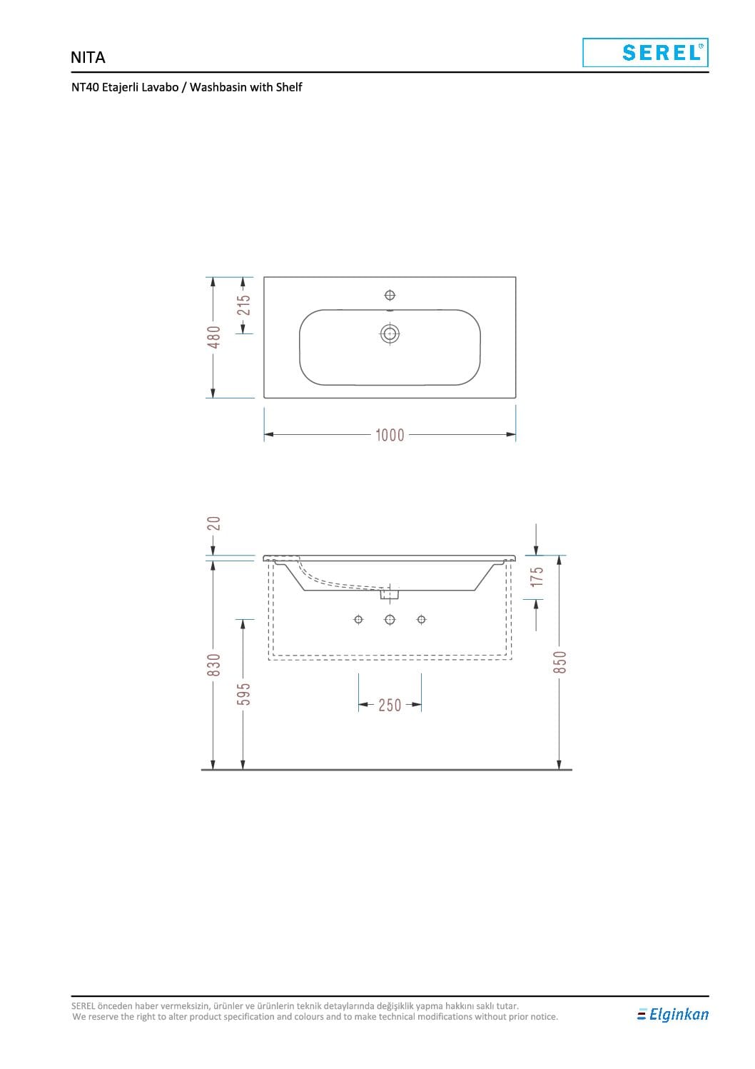 Eca Serel Nita Etajerli Lavabo 48×100
