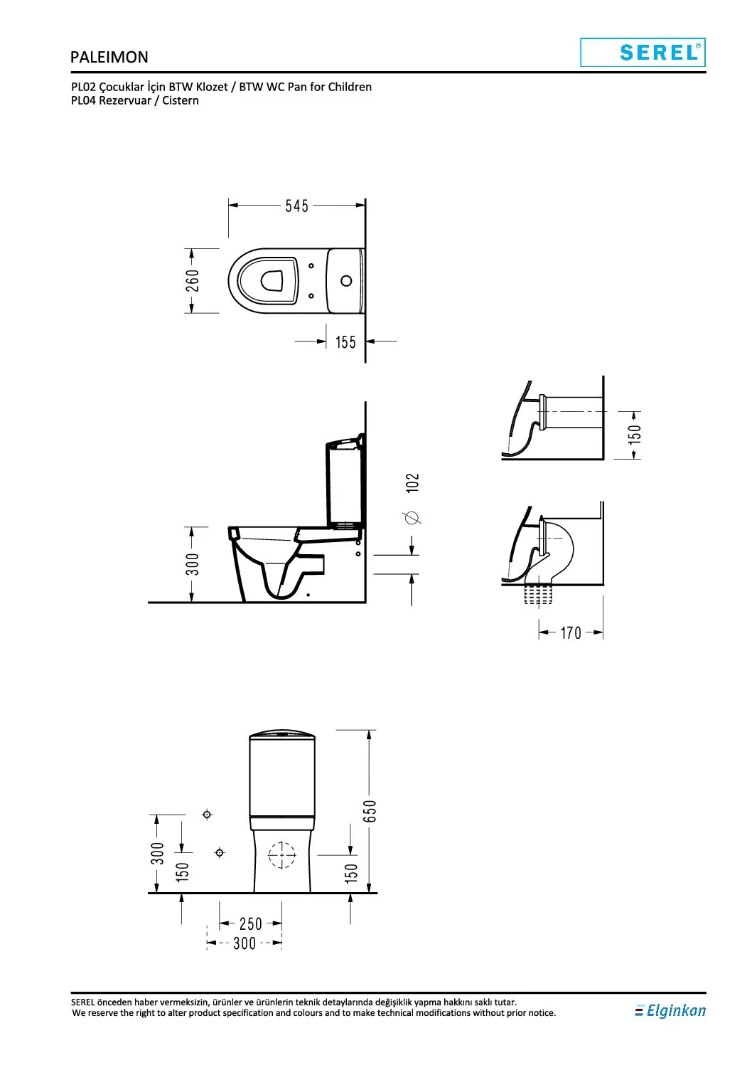 Eca Serel Paleimon Çocuk Duvara Tam Dayalı Klozet 54×26
