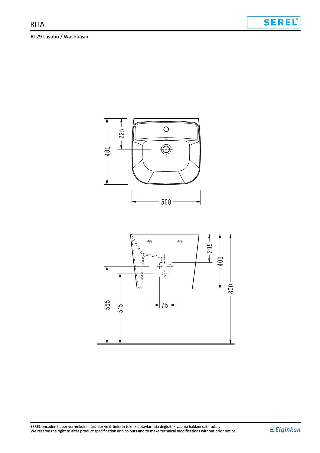 Eca Serel Rita Monoblok Asma Lavabo – Kısa 48×50