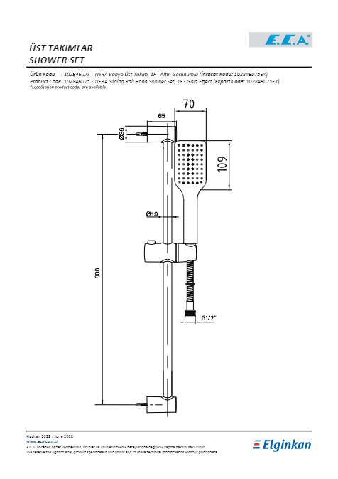 ECA Tiera Banyo Üst Takım Hareketli Altın Görünümlü – 102846075
