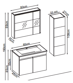 Bagnora PERGE 80 cm Banyo Dolabı – Beyaz/Antrasit (Boy Dolaplı)