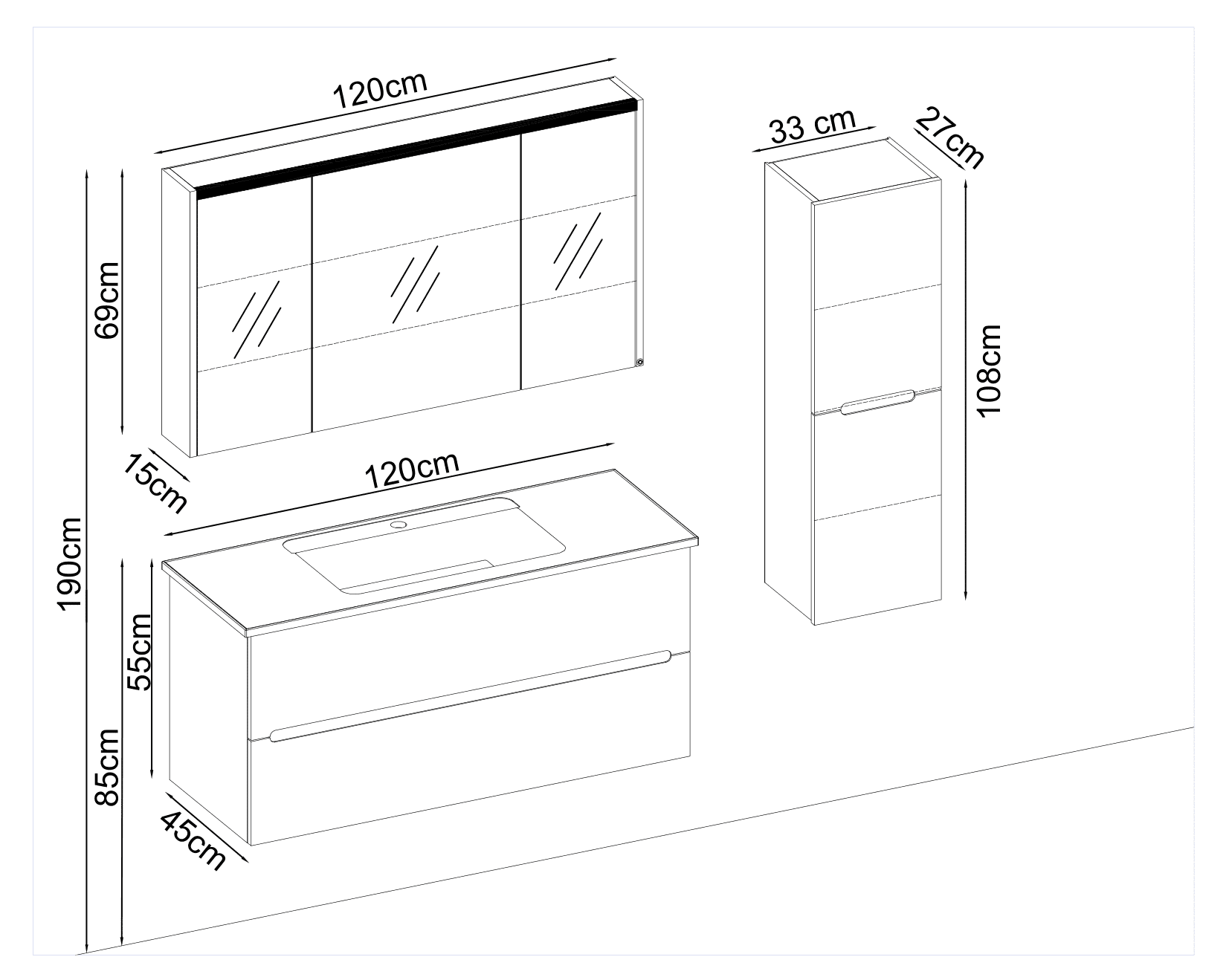 Bagnora Carrara120 cm Banyo Dolabı (Boy Dolapsız)