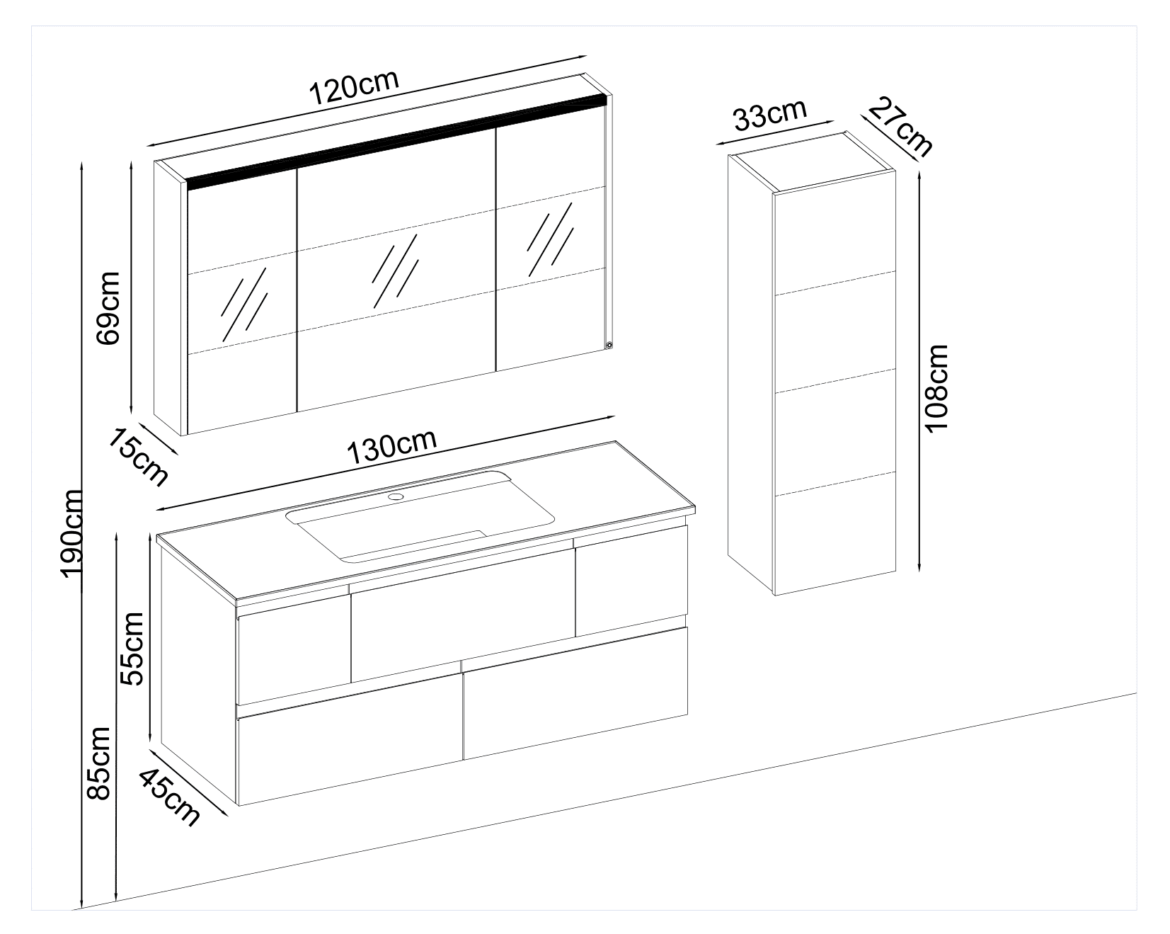 Bagnora Carrara120 cm Banyo Dolabı (Boy Dolapsız)