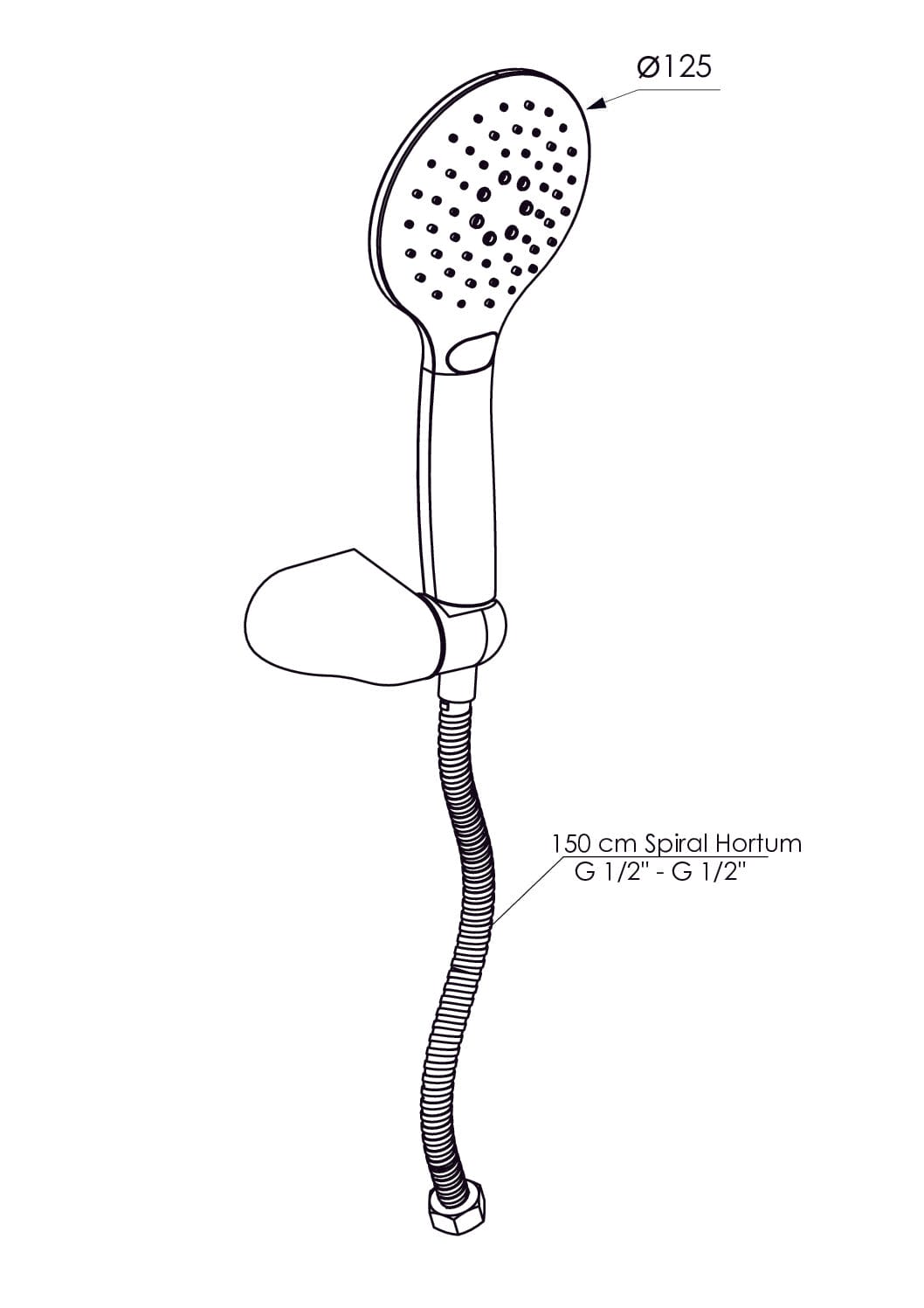 GPD Askılı Duş Seti 3 Fonksiyonlu Ø125 Siyah DST56-S