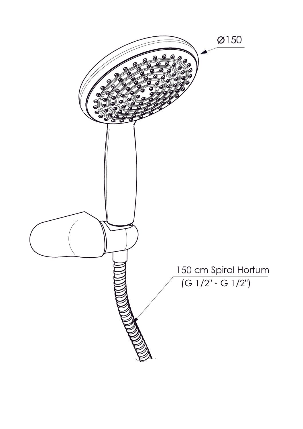 GPD Askılı Duş Seti Tek Fonksiyonlu Ø150 Krom DST39