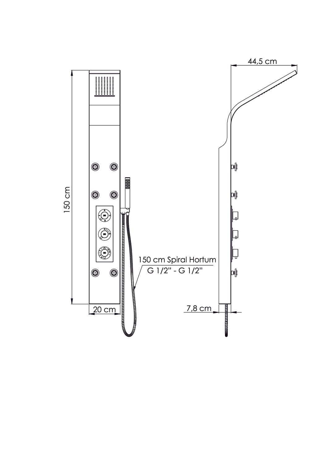 Acar Jet Black Hidromasaj Duş Paneli