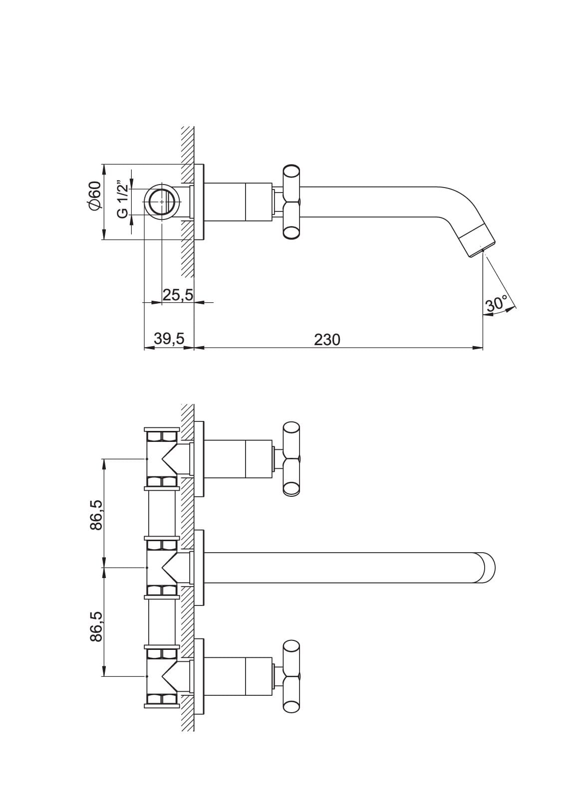 GPD Nino Duvardan Ankastre Lavabo Bataryası Krom DAB05