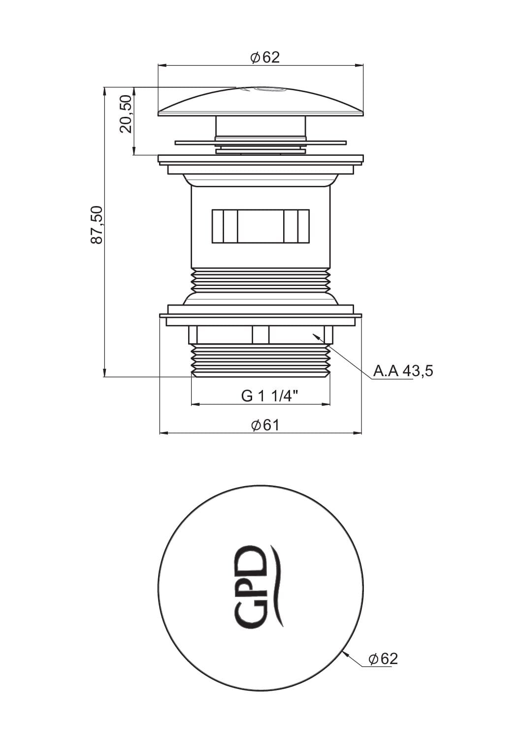 GPD Pop-Up Ünitesi Basmalı-Normal/Taşma Delikli Krom PUP06