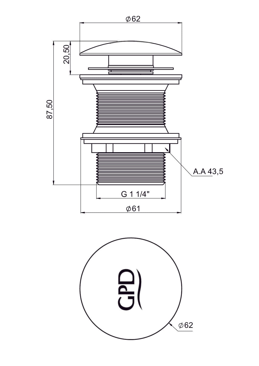 GPD Pop-Up Ünitesi Basmalı-Normal/Taşma Deliksiz Krom PUP05