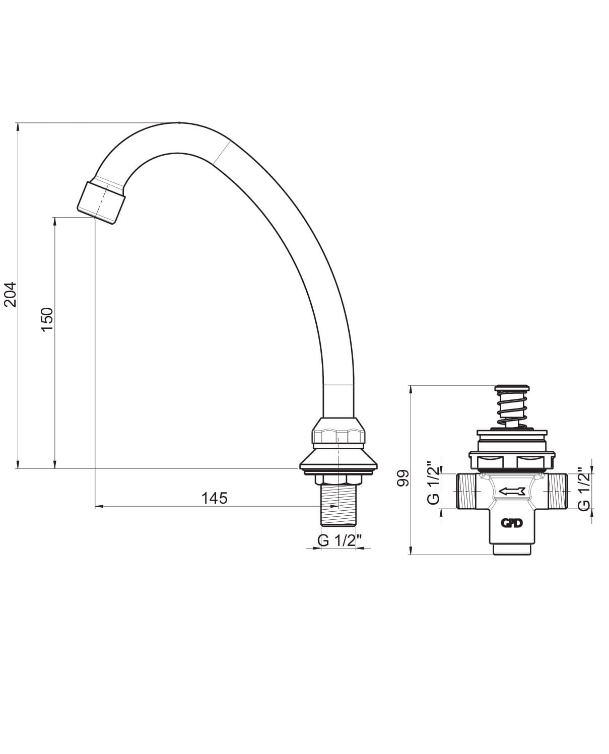 GPD Zaman Ayarlı Ankastre Eviye Bataryası Kapaksız Krom ZAE02