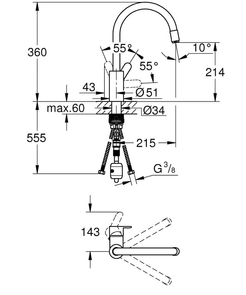 Grohe Minta Spiralli Eviye Bataryası, 2 Fonksiyonlu