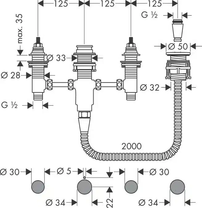 Hansgrohe 4 Delikli Küvet Bataryası İç Set