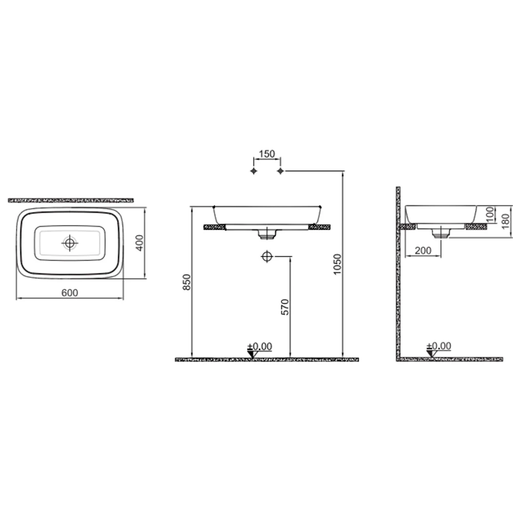 Kale Dove 2.0 60×40 Cm Beyaz Bronz Dikdörtgen Çanak Lavabo