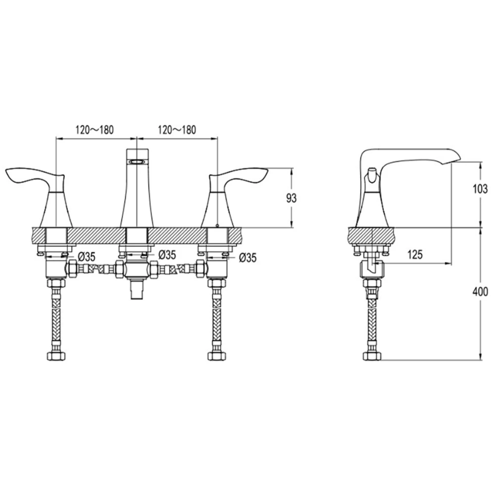 Kale Karina Fırçalanmış Nikel 3 Delikli Lavabo Bataryası