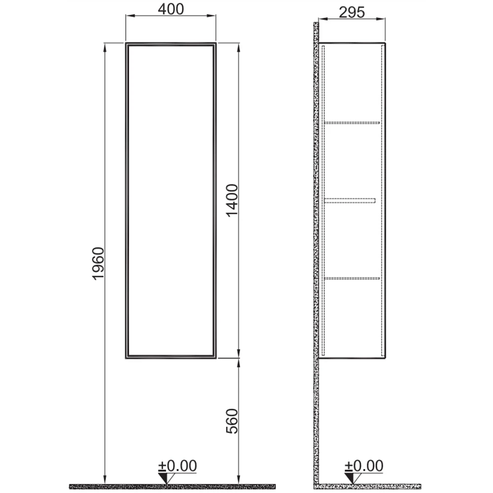 Kale Mood 35 Cm Mat Siyah-Pasifik A Raflı Yan Modül