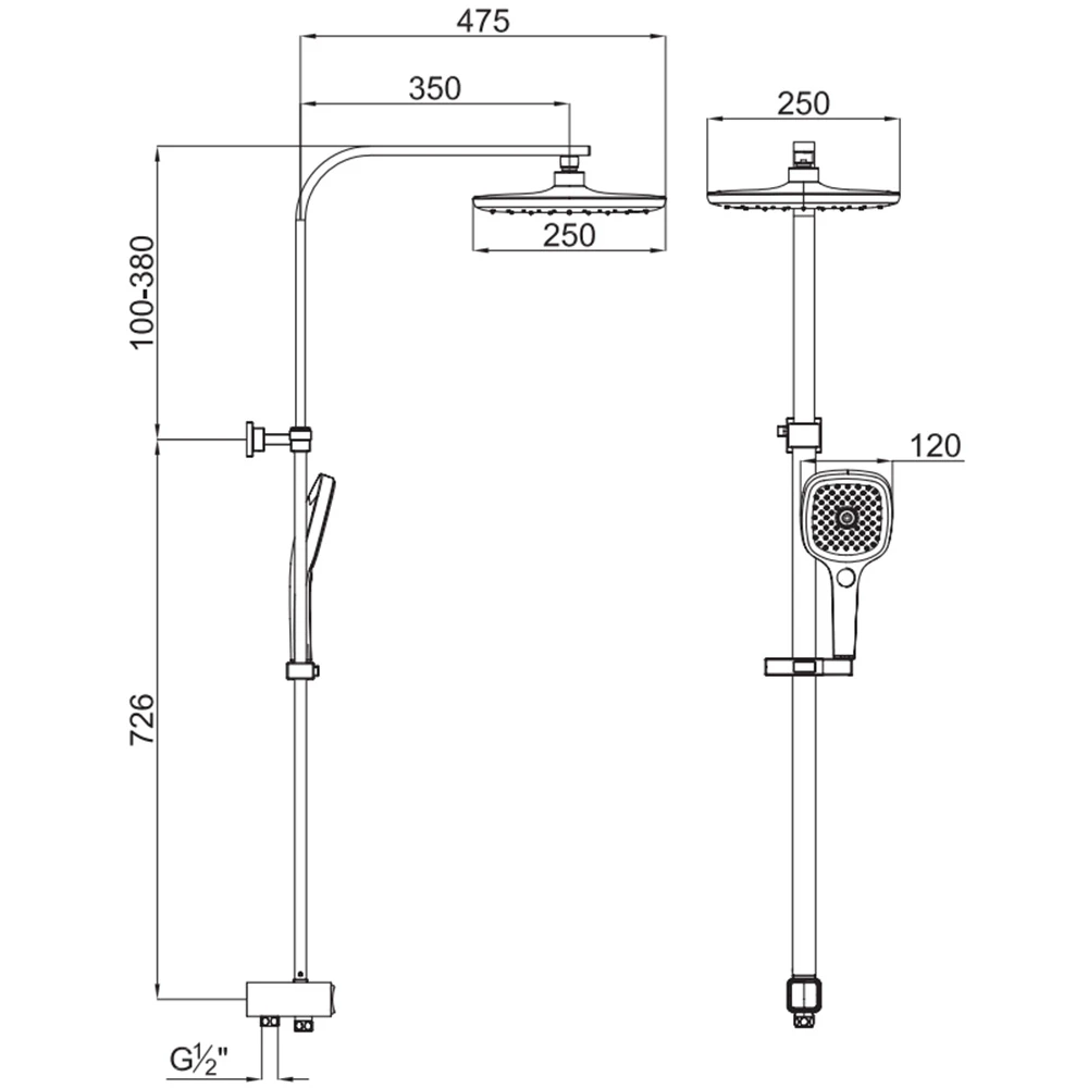 Kale Rain Square Push Buton Siyah Kare Duş Barı