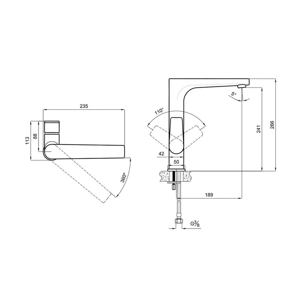 Kale Zero Siyah Döner Borulu Mutfak Bataryası