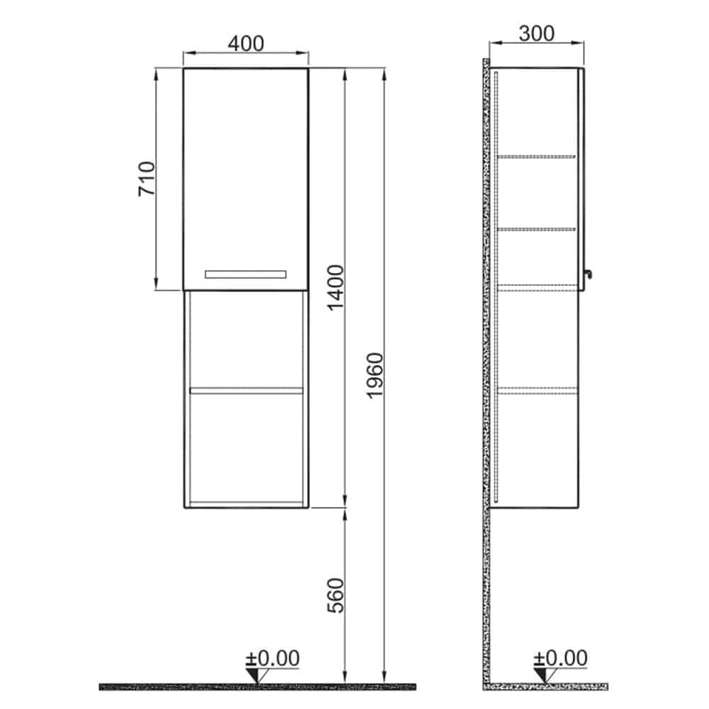 Kale Trevi 40 cm Beyaz-Meşe Sağ Boy Dolabı